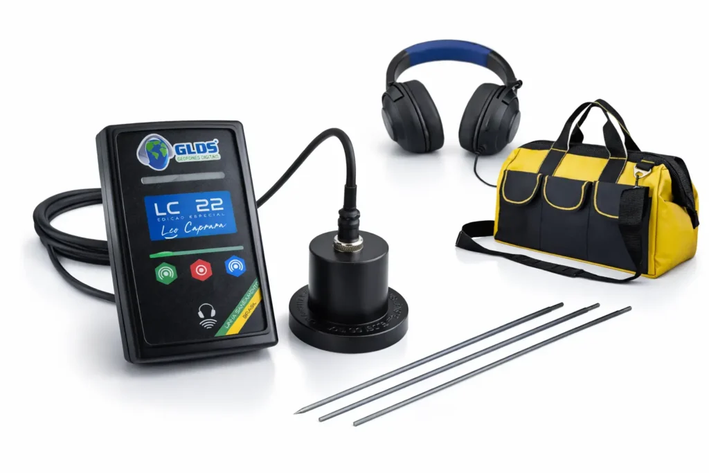 No saneamento, a identificação de vazamentos envolve variações de solo, pontos metálicos, registros, cavaletes e redes externas com interferências constantes. O LC-22 foi estruturado para atuar nesse contexto técnico, combinando leitura estável, resposta acústica controlada e operação prática para equipes que trabalham em campo aberto. Abaixo, estão organizados os principais recursos que sustentam essa aplicação.